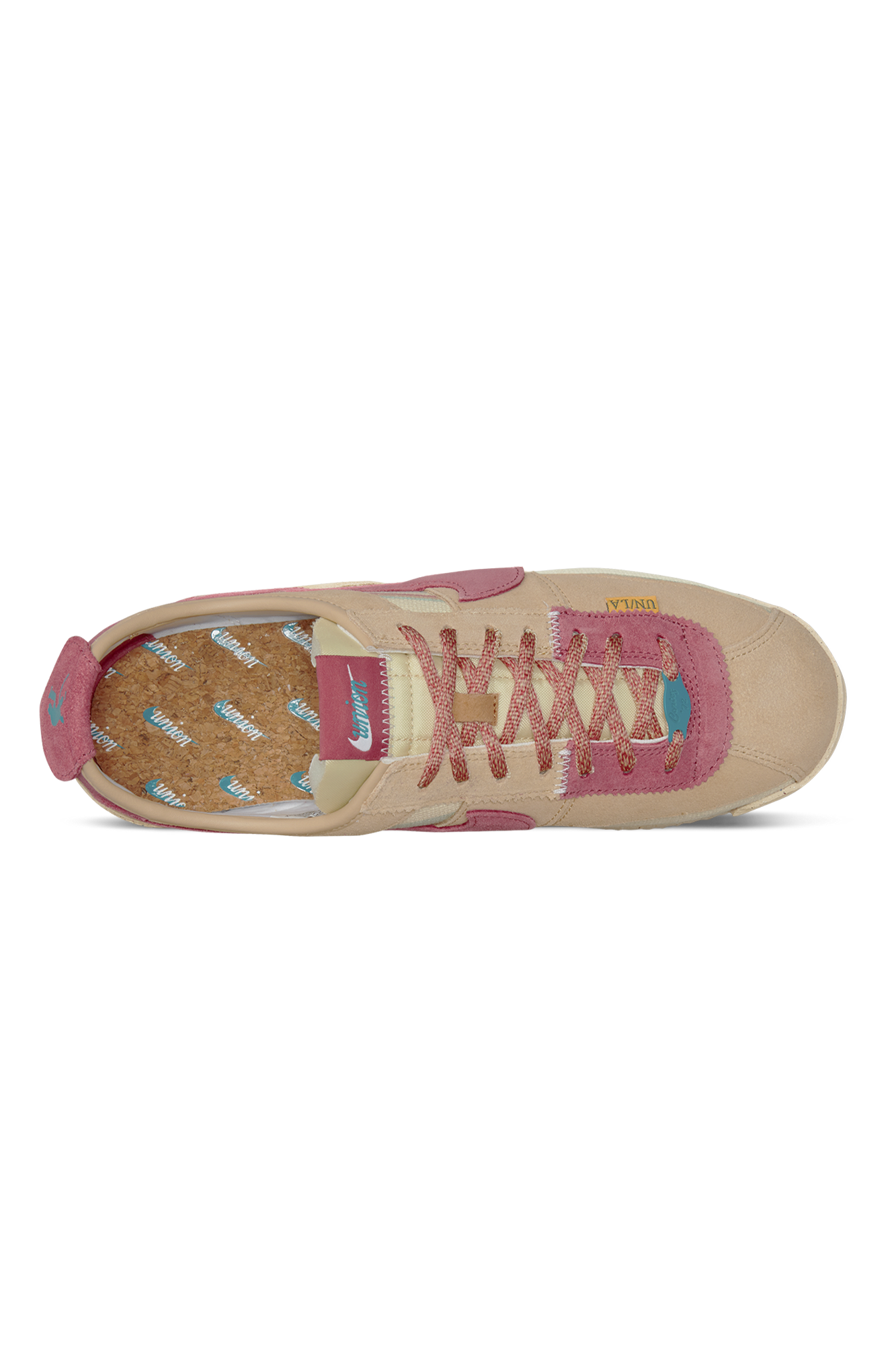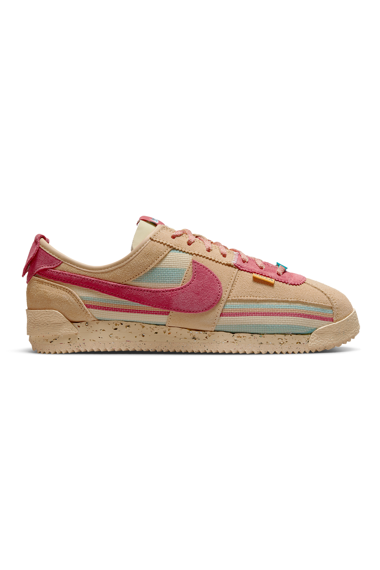 The Union x Nike Cortez is made with a canvas-like base with suede overlays. Union’s UN / LA labels appear on the lateral forefoot while their Frontman logo is printed on the heels. Co-branded cork insoles atop the Crater Foam outsoles complete the design.