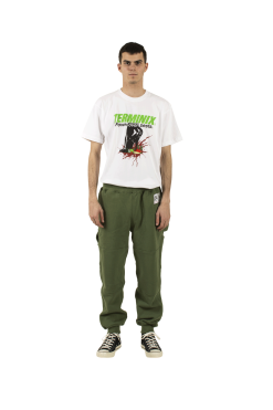 Known for his collaboration with Supreme in 2003, Andrew Richardson extended his magazine, Richardson Mag, to clothing, creating a true streetwear brand. This green sweatpants have an adjustable waist and elasticated bottom, two front pockets that can be closed with a zip, two rear pockets, two lateral ones at knee height and a patch with the brand logo sewn on the front.