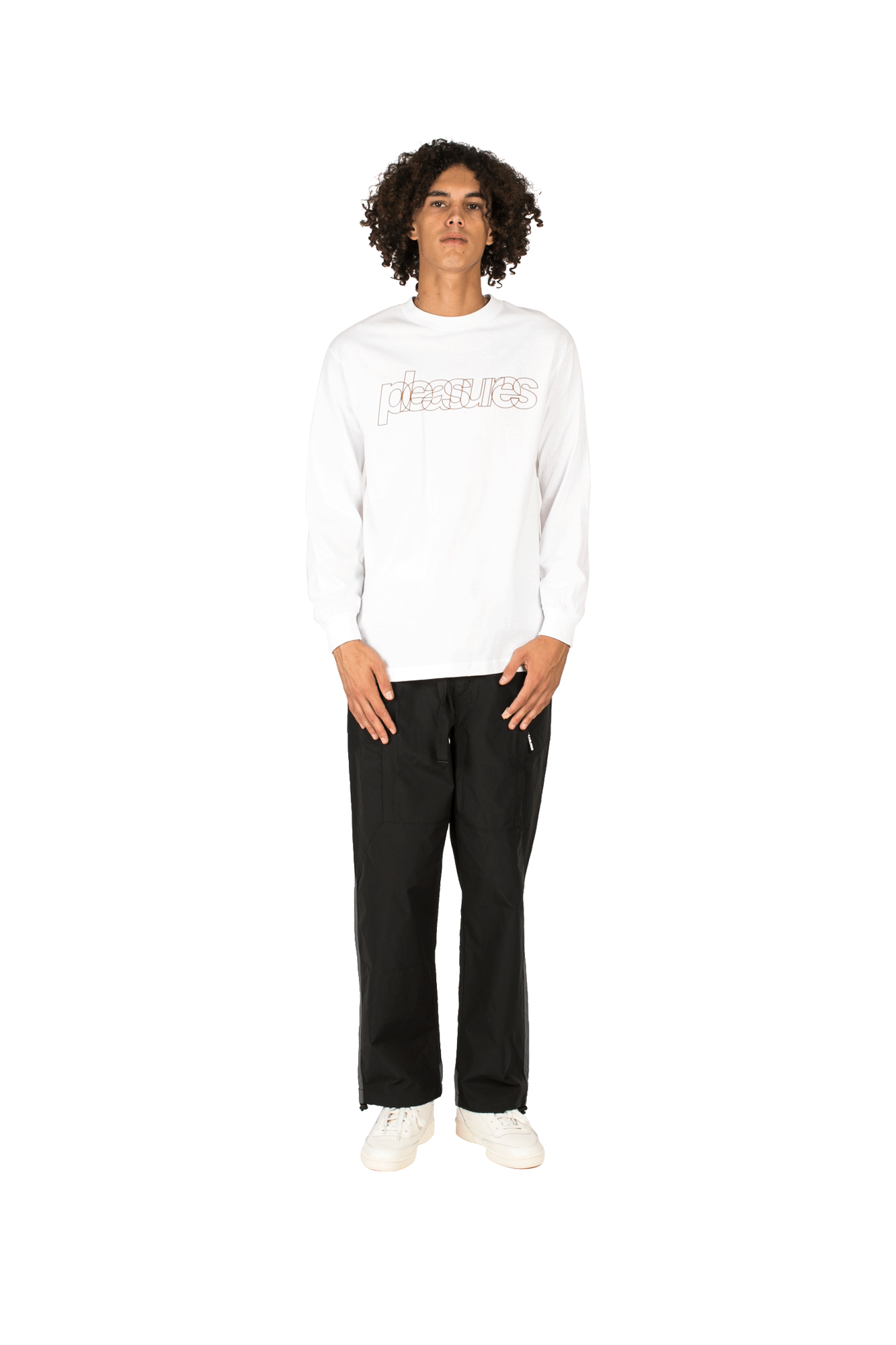 This white longsleeve features a regular fit and a print designed by Frankie Banks of the brand logo in red on the chest. Founded in California, Pleasures was launched by Alex James and Vlad Elkin with a pop-up store in Los Angeles in June 2015. Thanks to its graphics strongly inspired by the punk, metal and grunge scene, Pleasures quickly established itself as one of the most trendy streetwear brands in recent years.