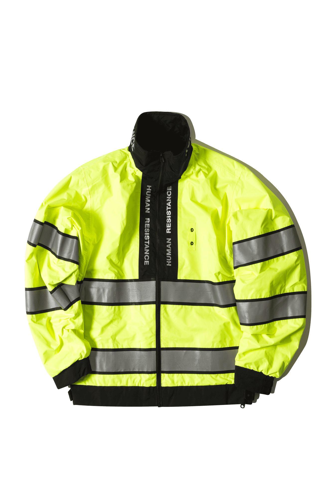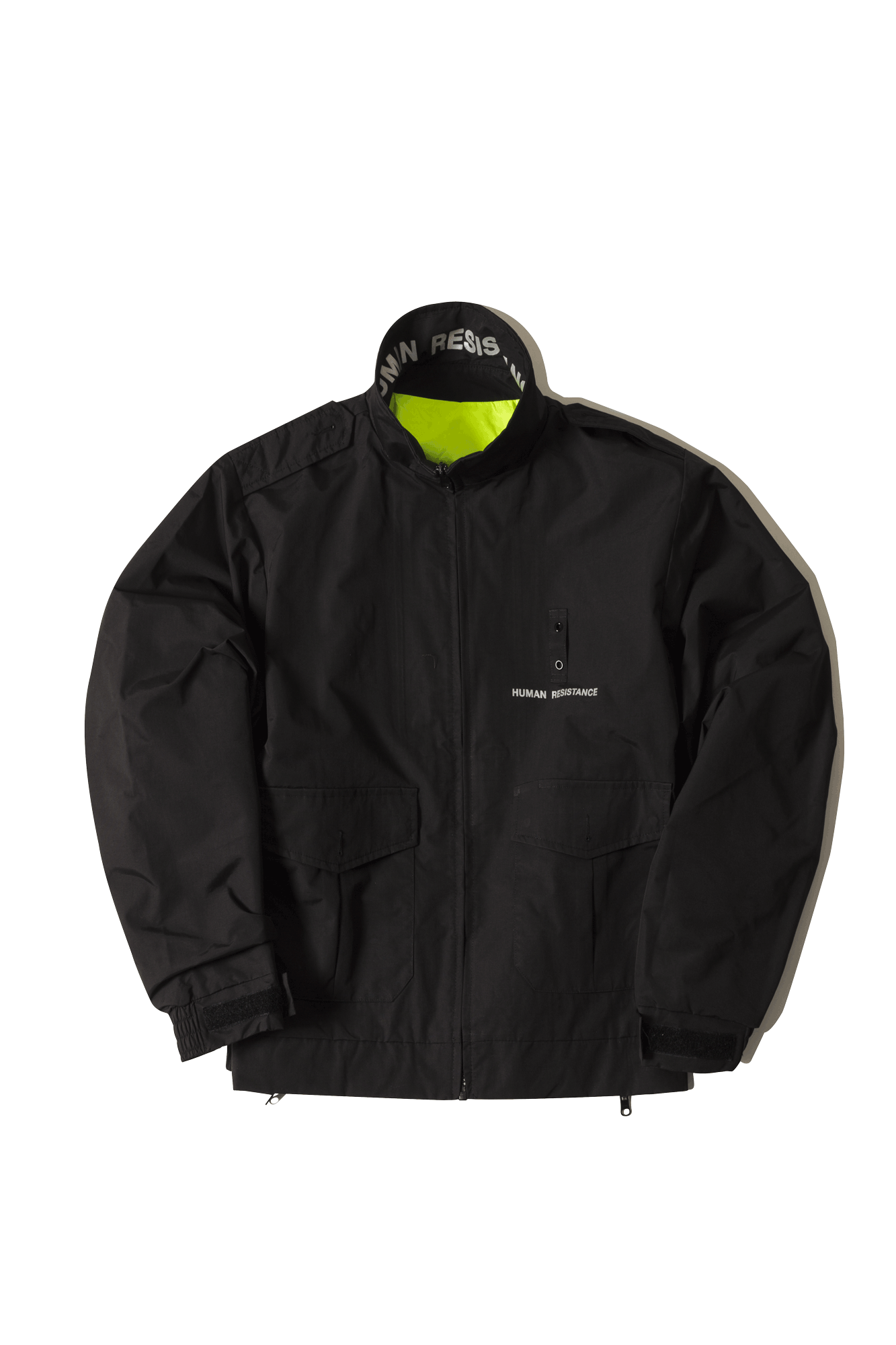 Long sleeve reversible nylon jacket in black. Logo graphics printed in reflective silver-tone throughout.