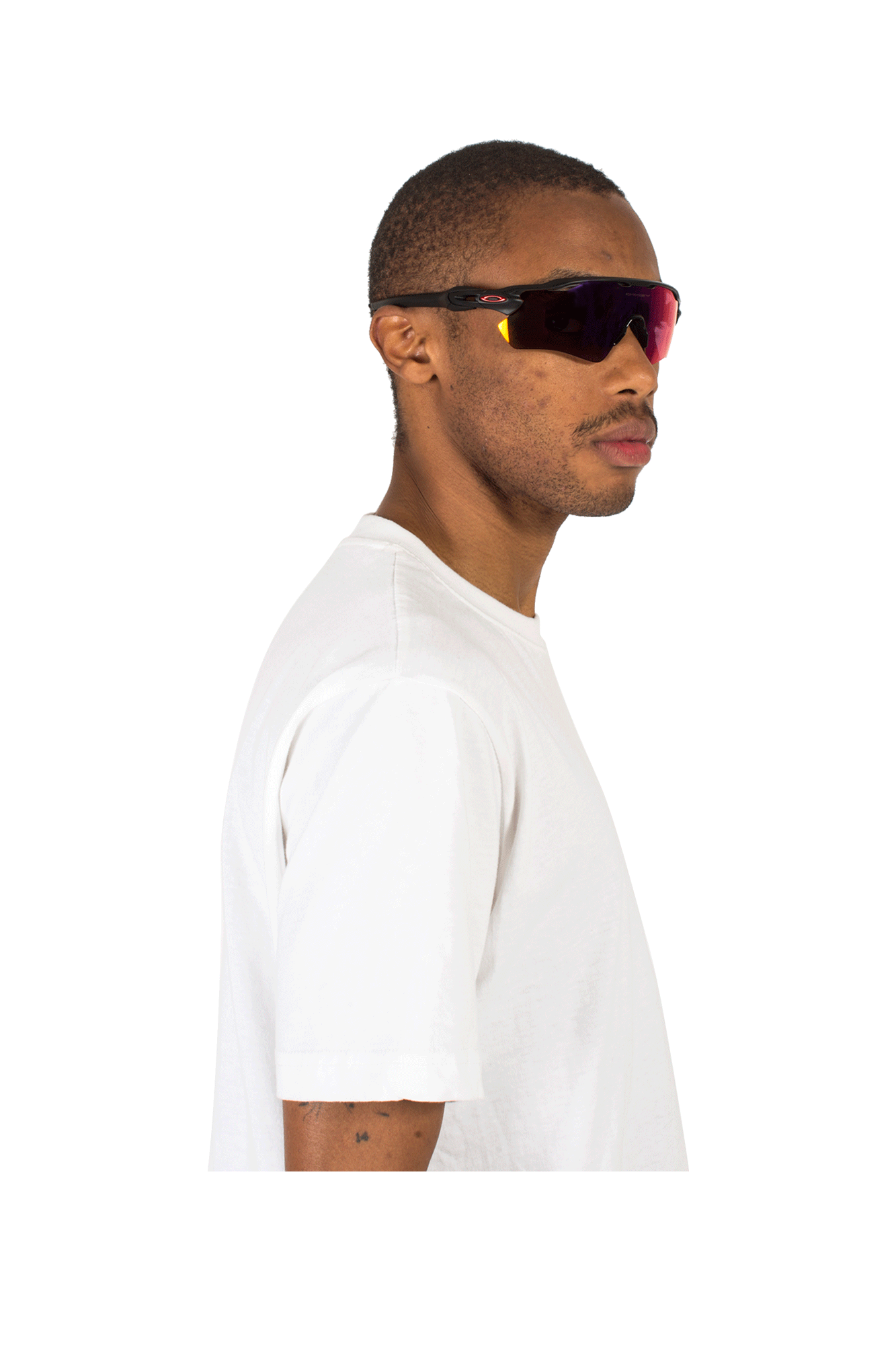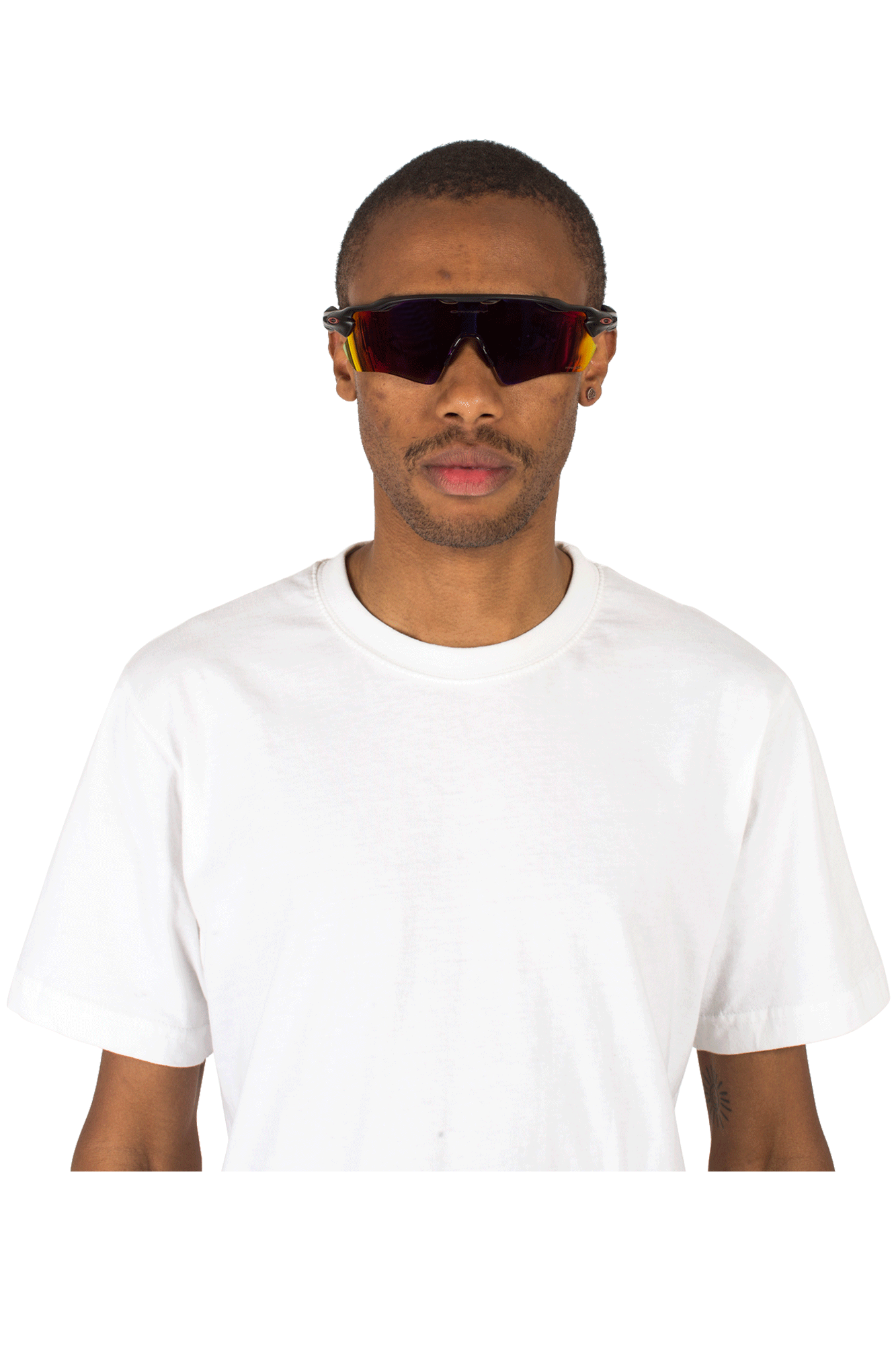 One of the world’s leading sports eyewear brands, Oakley stands out for the research and technological innovation of its lenses. The brand also has a clothing line, made up not only of technical garments for sportsmen, but also of casual products, suitable for everyday life. The sporty sunglasses feature a very modern look, a lightweight black frame and orange and purple lenses.