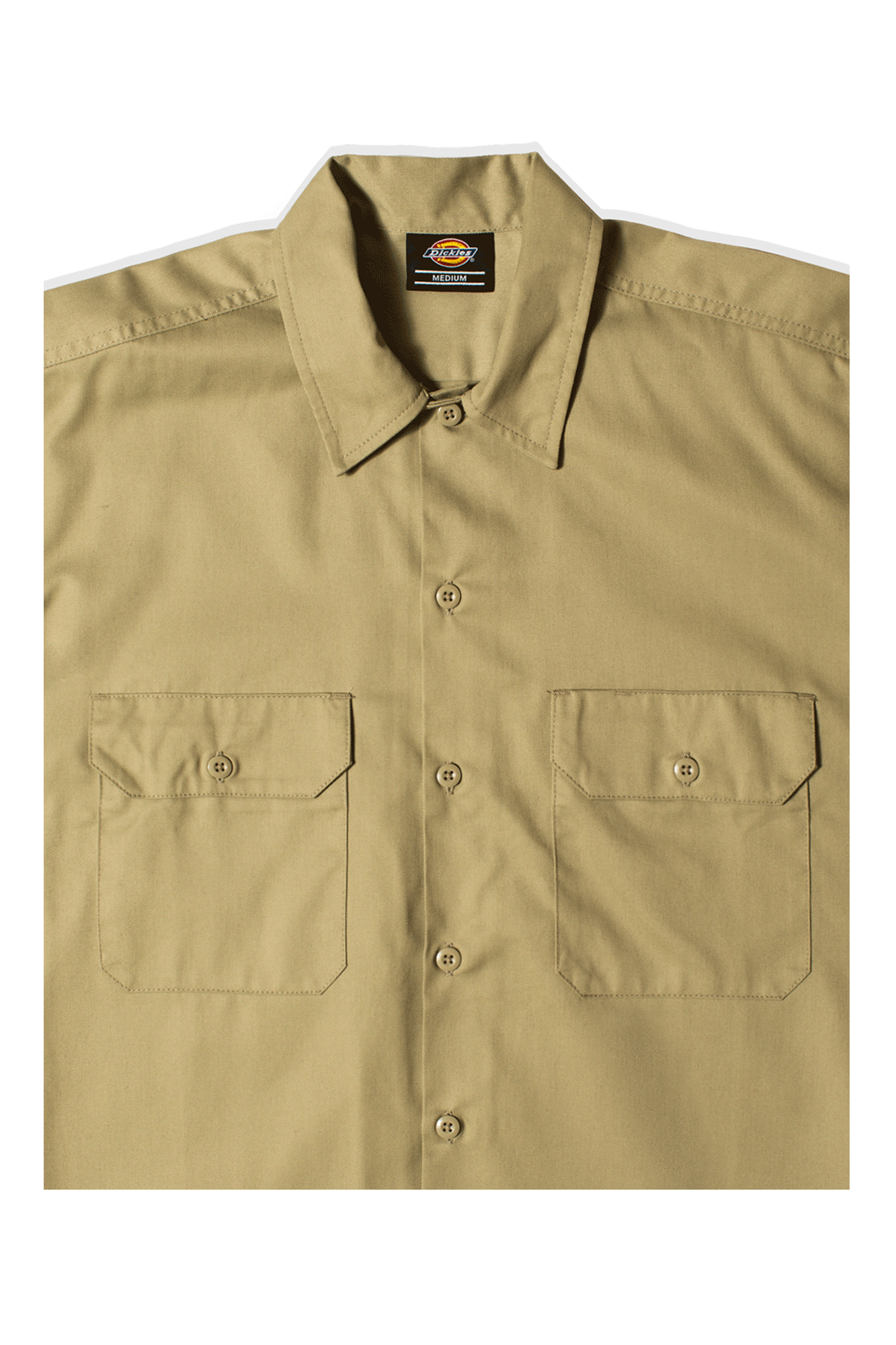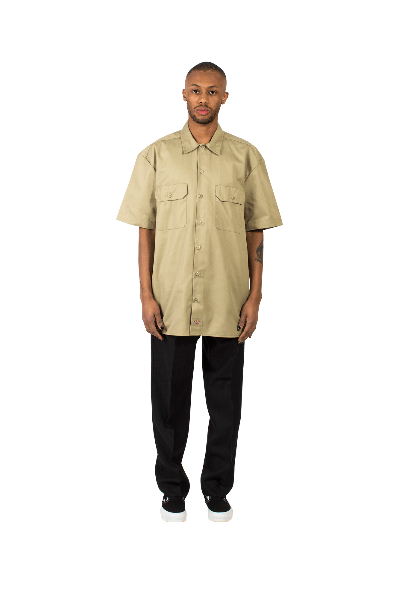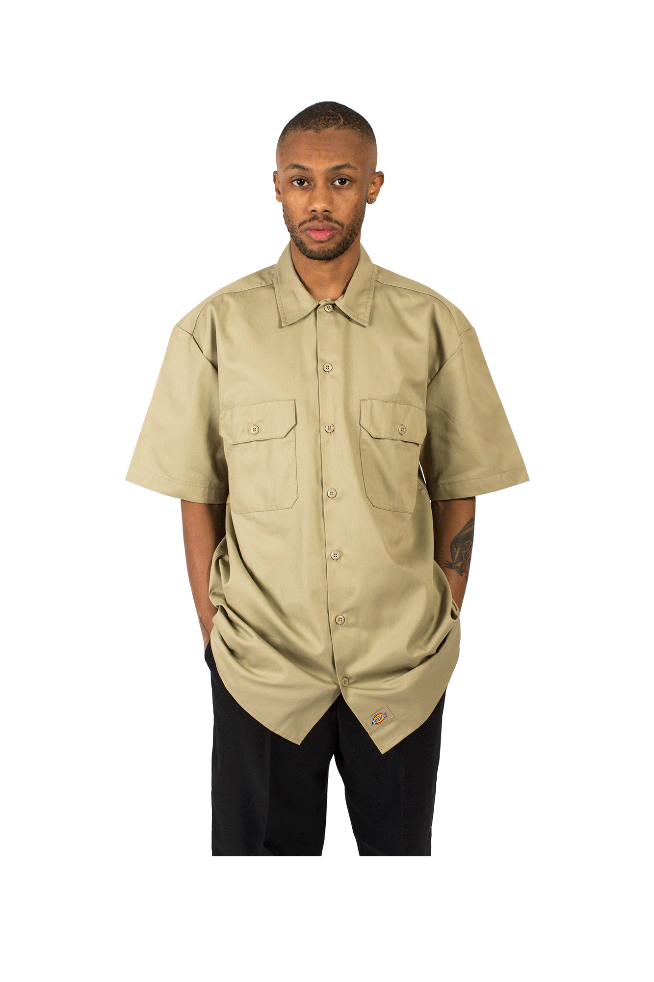 Born as a leather equipment brand, later reconverted into a workwear company, Dickies, thanks to the relaxed fit and resistance of its garments, defined by the brand as “tearproof%E2%80%9D, has become a favorite among skaters, becoming a true icon in the world of American streetwear. This khaki short-sleeved shirt features a relaxed fit, central button closure and two front chest pockets with button closure.