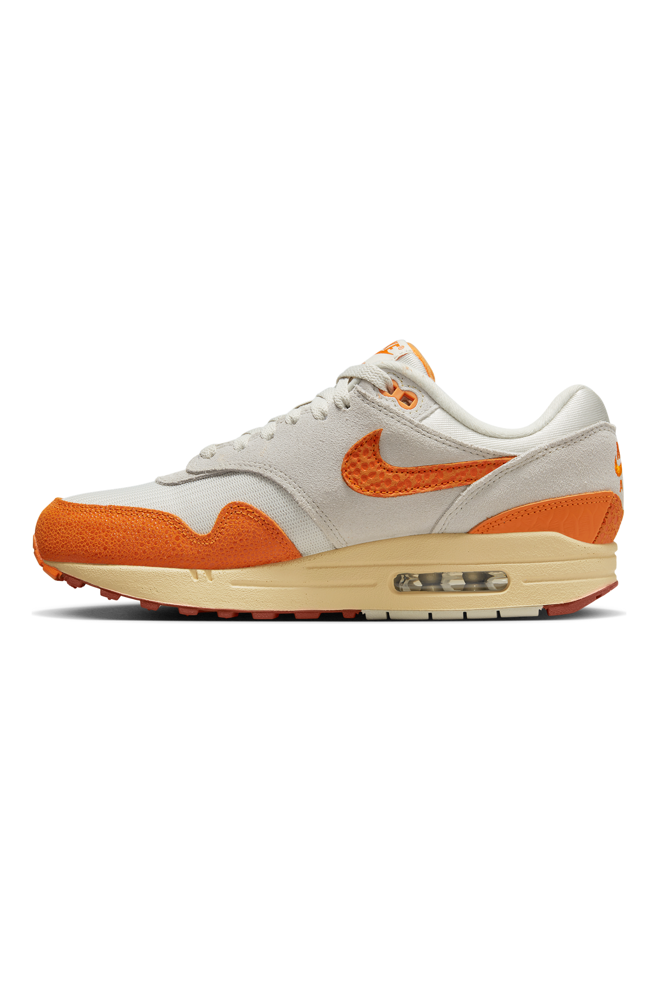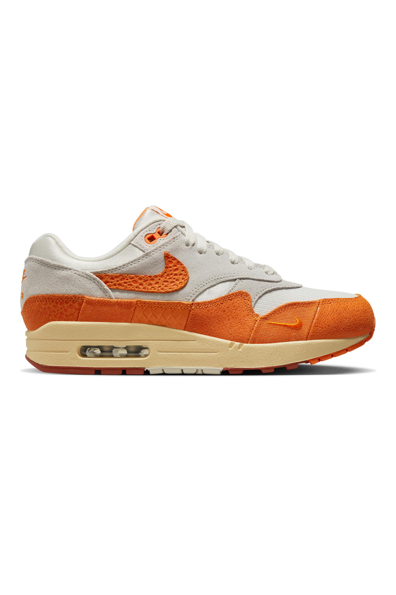 In 2017, Nike introduced the “Master” Air Max 1 to celebrate the model’s 30th anniversary, designed in various prints. For its 35th anniversary, Nike remembers that design with this “Magma Orange” version. Dressed in ‘Light Bone’, ‘Magma Orange’ and ‘Neutral Grey’ color blocks reminiscent of the 2020 Air Max 1 Anniversary release. This offering of the Nike Air Max 1 features a breathable mesh upper with suede detailing with various prints used on the Swoosh and mudguards. A distressed midsole atop a tri-color rubber outsole completes the design.
